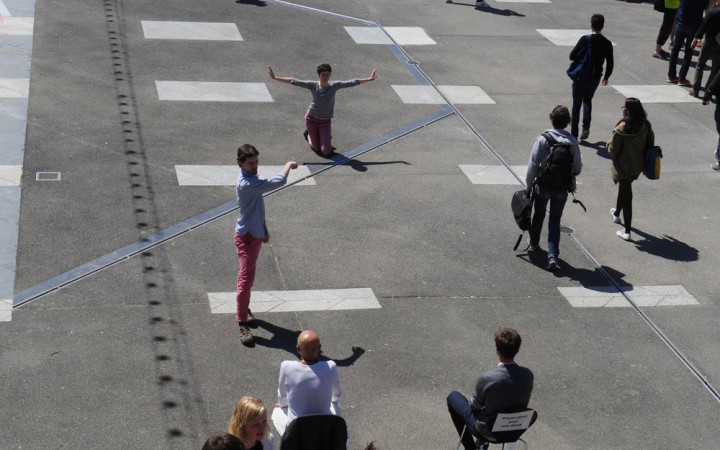 Los artistas traducen las emociones del público, las transforman para enviarlas de vuelta en forma de danza. One One One sugiere una relación específica para el público, diferente de una performance hecha para el teatro. Los intérpretes asumen el espacio público como un campo de experimentación y no representación. Los intérpretes se envuelven físicamente y mentalmente desestabilizando una cierta idea de realidad, dándoles la oportunidad de explorar sus límites o su relación con la transgresión. The artists translate emotions from the audience, transform them to send them back.